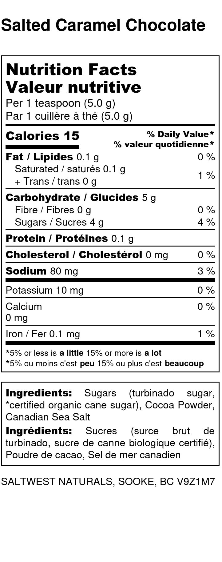Raw Turbinado Sugar, Cocoa Powder, Organic Cane Sugar, Canadian Sea Salt.